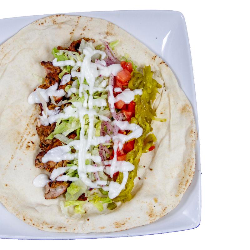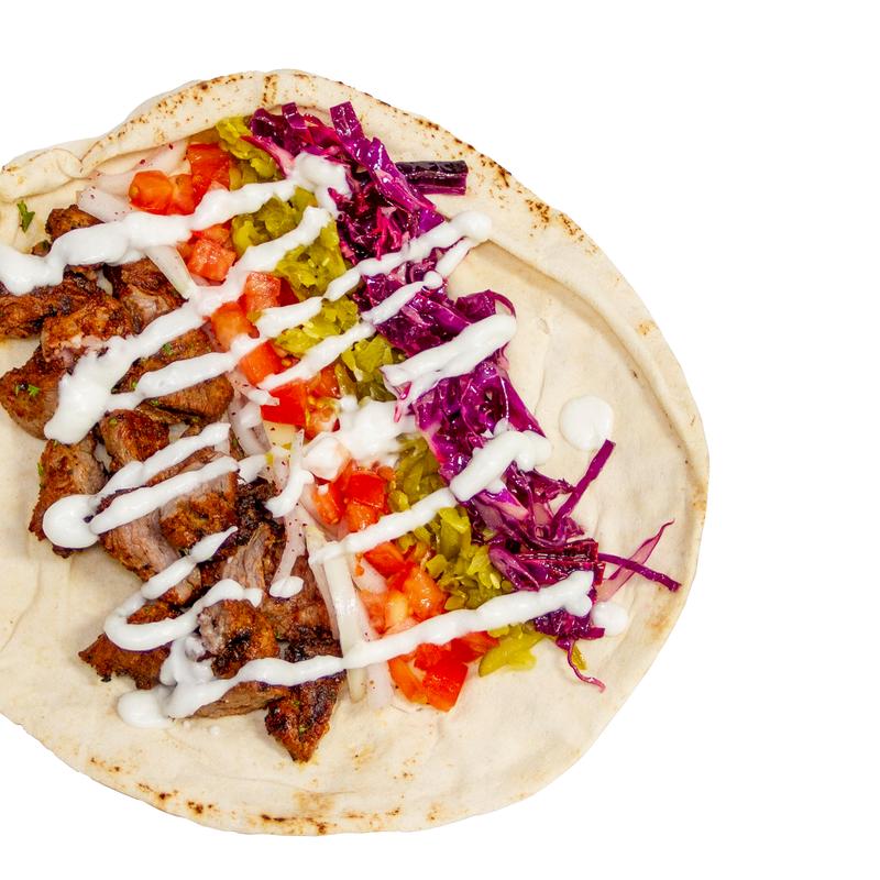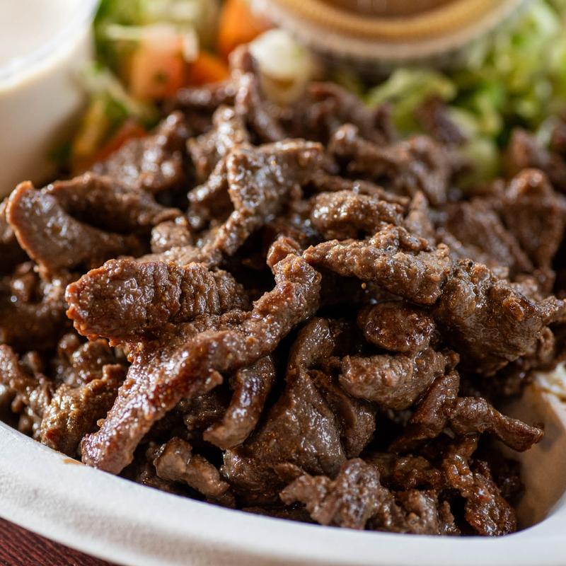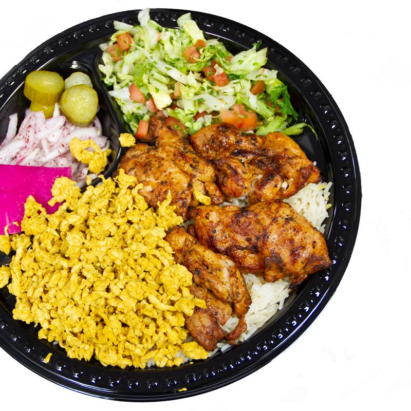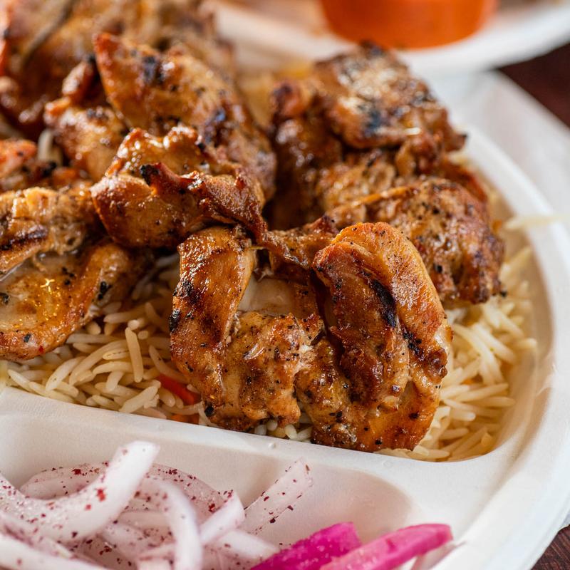 All entrées are served with basmati rice, pita bread, onions, lettuce, tomatoes, pickled beets, and pickles