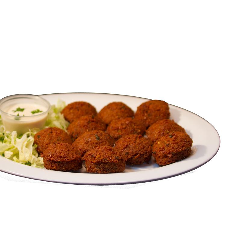 Falafel, kefta kebab, and chicken kebab, with beef shawarma and chicken shawarma.